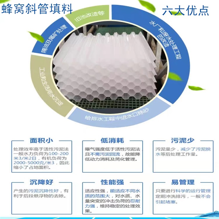 采用蜂窩斜管填料沉淀池其處理能力是平流式沉淀池的3-5倍,加速澄清池和脈沖澄清池的2-3倍直管直管主要用于生物濾池和高負荷生物濾池、塔式生物濾池。淹沒式生物濾池(又稱接觸氧化池)以及生物轉盤的微生物載體,對工業有機廢水和城市污水進行生化處理。