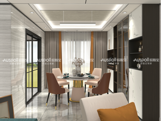 新中式餐廳多講究對稱美學,家具布局溫馨對坐,吊頂采用簡潔的線條設計,搭配無主燈相得益彰,讓傳統(tǒng)韻味與現(xiàn)代感并存。
