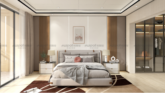 溫馨而淡雅的臥室空間,以淺色為底,融入深木色,增添自然溫馨感,簡單中尋求變化,典雅又清雋。