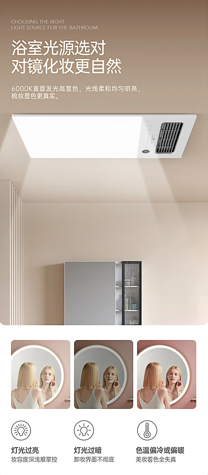 智浴·尚2.0浴室空調,擁有超大屏無界照明設計,28W高光效直面發光,讓暗衛秒變明衛,高清數顯,實時掌握浴室溫度,運行狀態一目了!