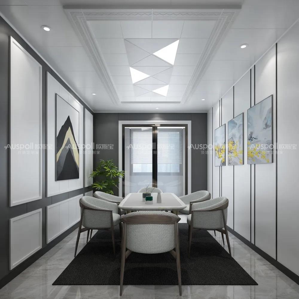 產品可釘可鋸可刨,能適應不同空間的造型,滿足各種各樣的裝修風格,與歐斯寶扣板產品搭配安裝能夠實現整體風格的和諧統一,從而達到全屋整裝的效果。對于業主來說,不僅省去了來回跑裝修市場、選購材料的時間,還避免了與多方裝修公司溝通對接麻煩。